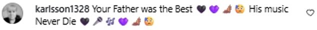 Fans rushed to offer their support in the comments, writing: ‘He is so very proud. Kelly, you are stunning,’; ‘Your father was the best. His music will never die,’;