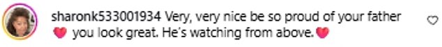‘Very, very nice. Be so proud of your father. You look great. He’s watching from above,’;