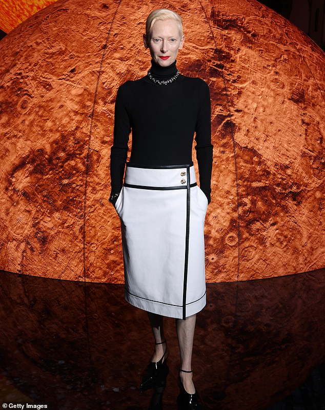 Tilda Swinton poses for photographers upon arrival at the Chanel Spring/Summer 2026 collection