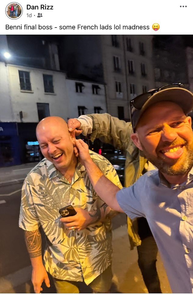 A caption alongside the photo reads: ‘Benni final boss – some French lads lol madness.’